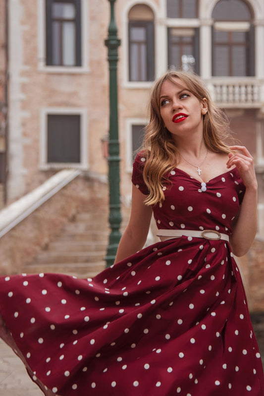 Miss Lily Dress in Burgundy Dots