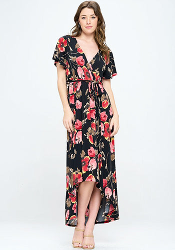 Summer in Spain Hi Lo Dress in Black Red Floral