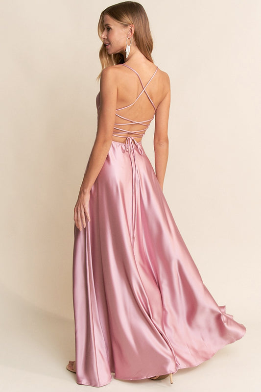 Catalina Satin Dress in Rose