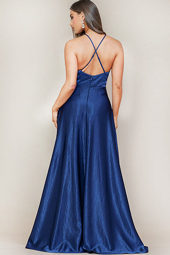 Camila Satin Dress in Bright Blue