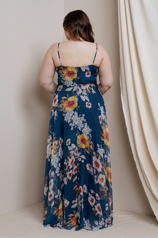 Bella Dress in Teal Floral - Plus