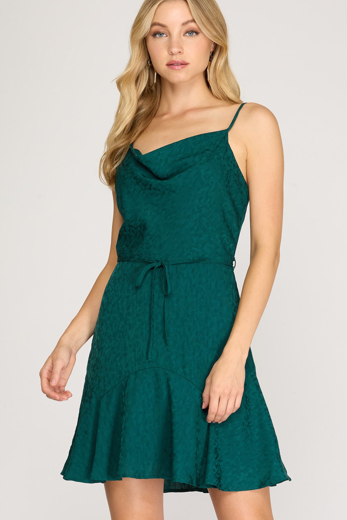 Lovely cami dress with cowl neck. Back zipper. Adjustable shoulder straps.