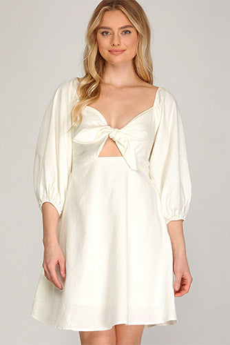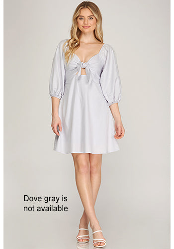 Lovely dress with 3/4 balloon sleeves, front tie, and smock back.