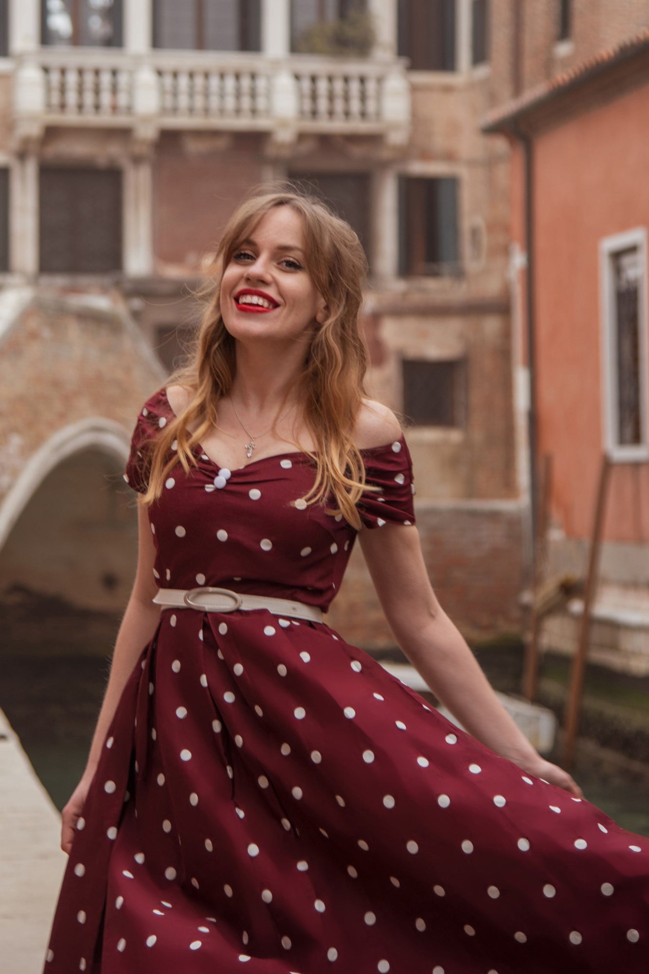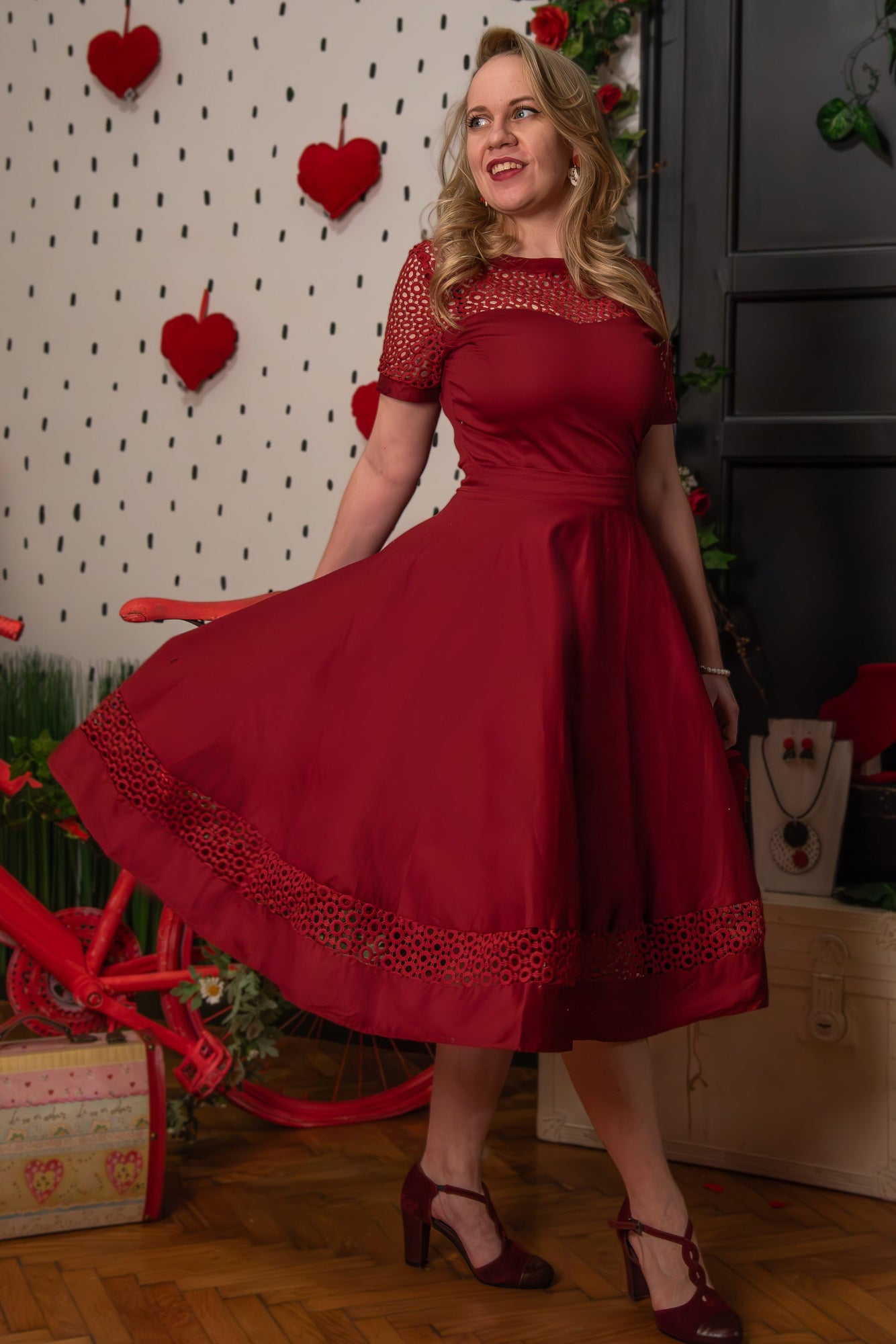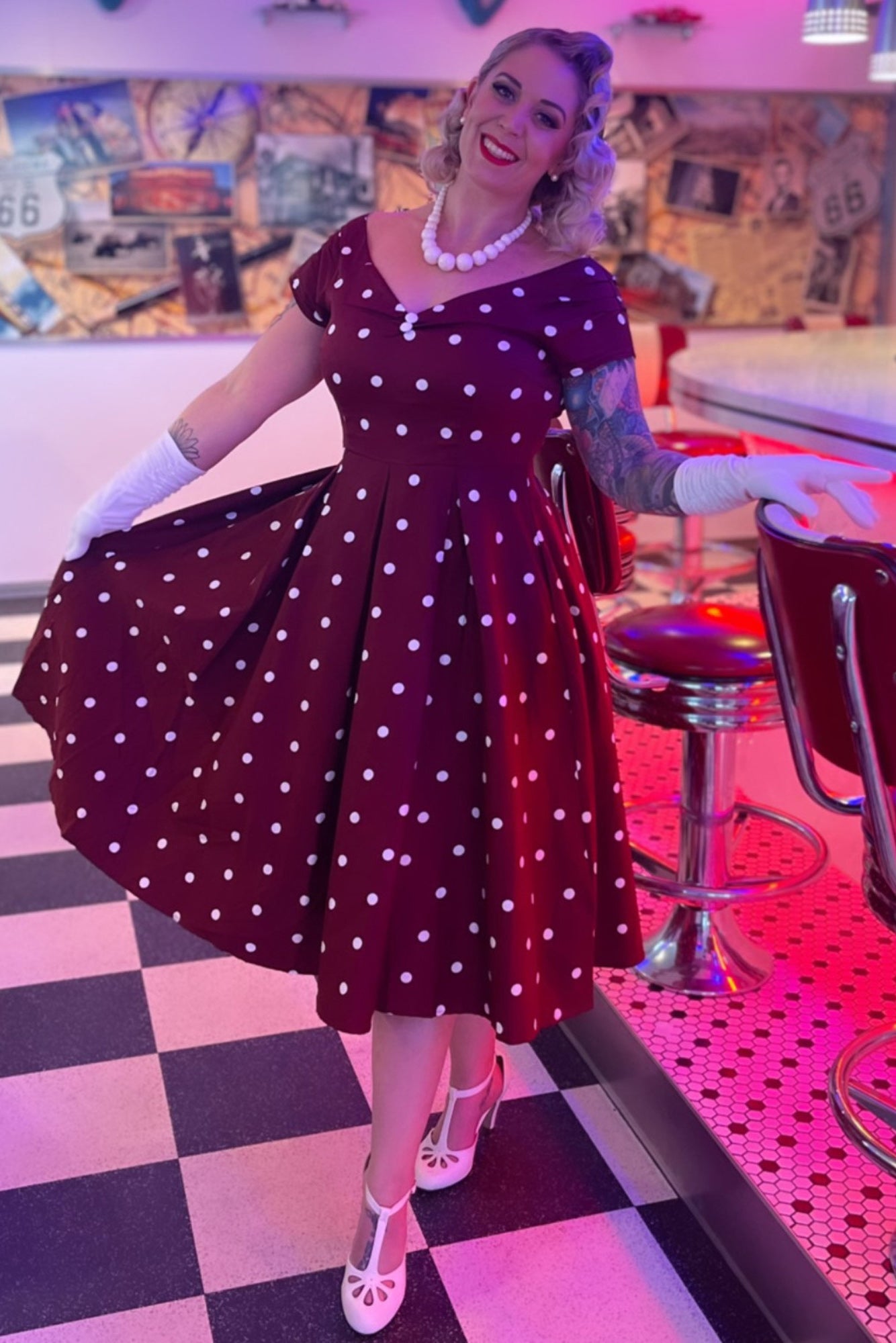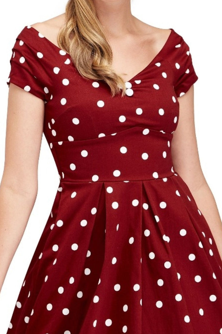 Miss Lily Dress in Burgundy Dots