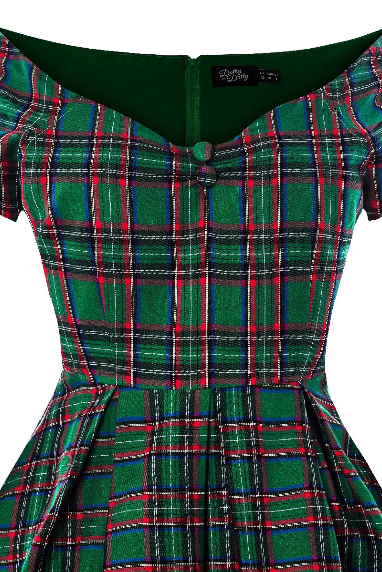 The beautiful Lily swing dress features gorgeous off the shoulder sleeves with a gathered bust with button detail, flattering fitted waist, hidden pockets and a stunning 50's style, pleated flared skirt. This simple yet seductive style fastens at the back with a concealed zip and is made from soft cotton.